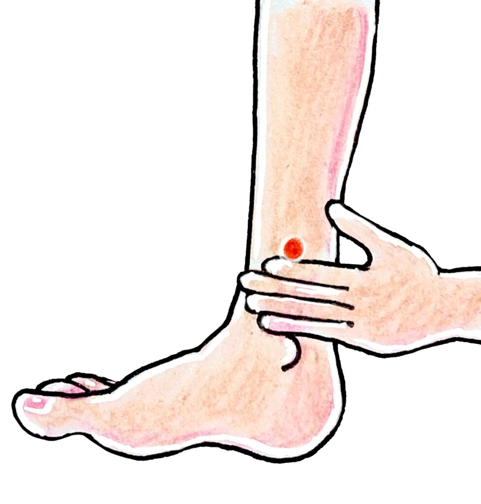 ・三陰交(さんいんこう):足首の内くるぶしから指4本分上。女性の体調全般に良いツボです。